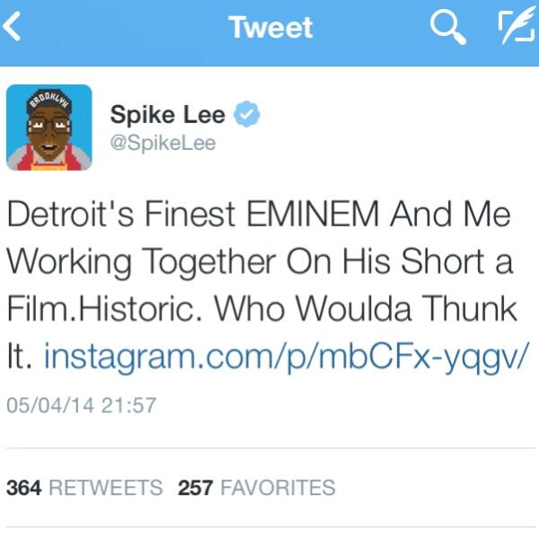 tweet che viene poi confermato dallo stesso Eminem con la pubblicazione di una foto su Instagram che ritrae Mr. Mathers e Spike Lee insieme, con il messaggio “Spike came out to The D for the “Headlights … Coming soon.”