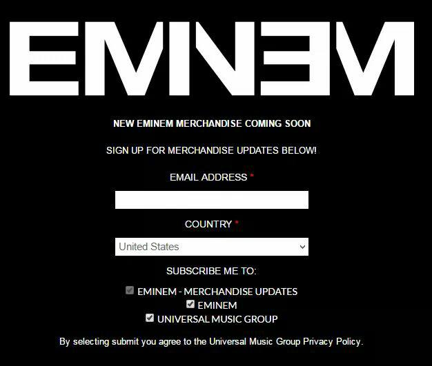Direttamente dal suo sito ufficiale eminem.com, ci arriva la notizia di un imminente arrivo di nuovo merchandise.